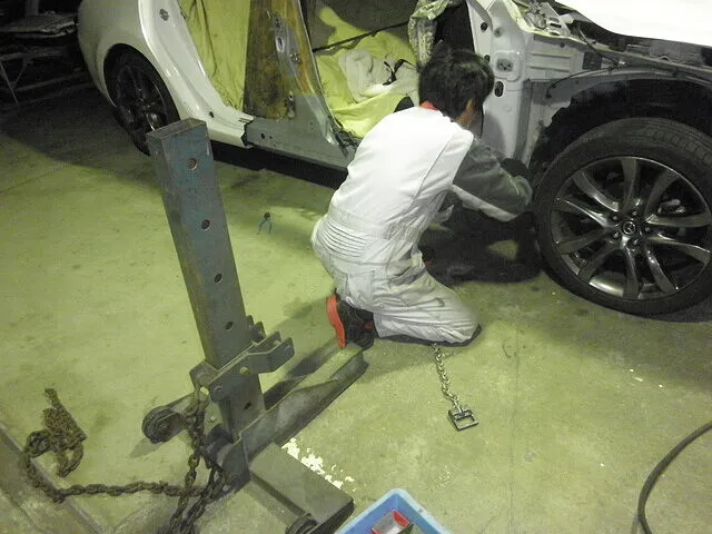 事故によって破損した車は、フレームがゆがんでしまい、人力だけで直すのは難しいです。
